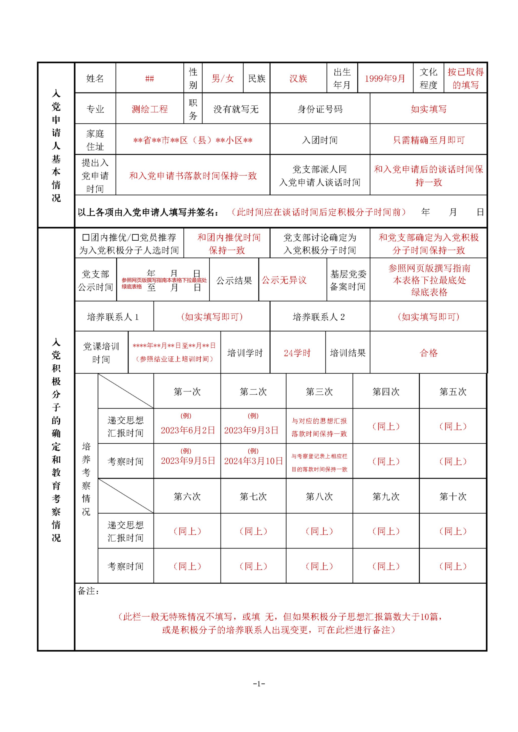 版本1:适用于在本院提交入党申请后,全程一直在本院发展入党的同志(适用于院内绝大部分发展入党的同志)