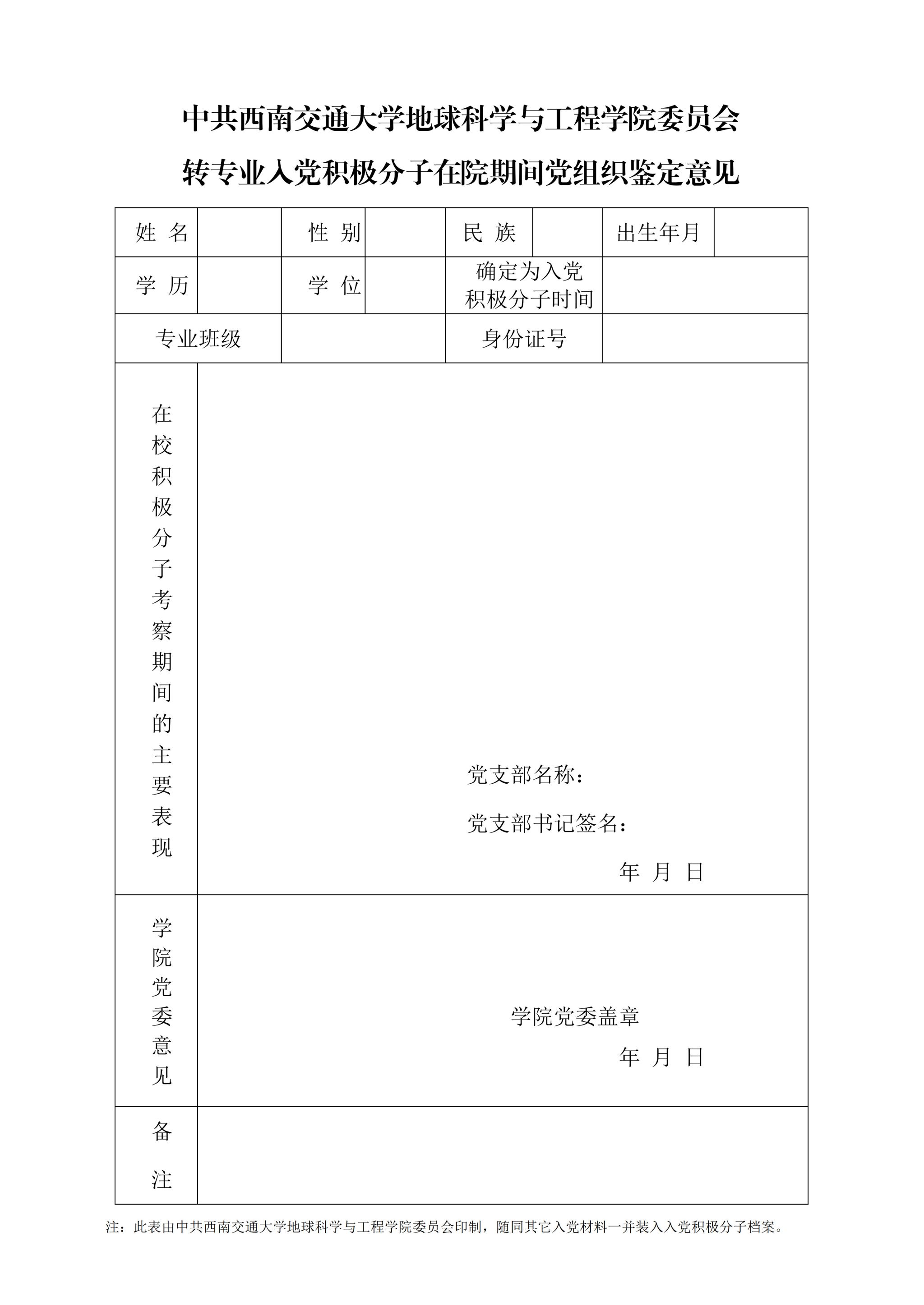 2)转专业入党积极分子在院期间党组织鉴定意见样例与撰写指南: