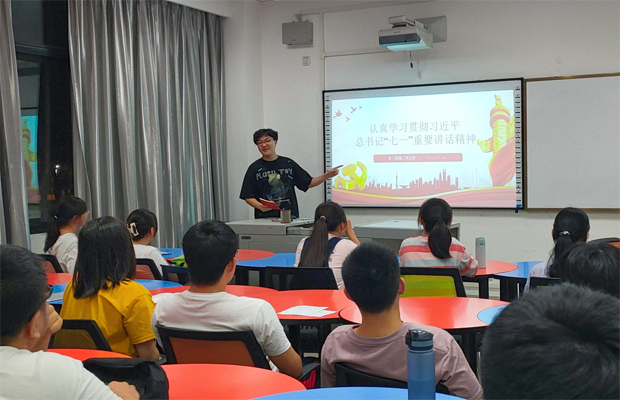 2021年7月1日上午8点整,庆祝中国共产党成立100周年大会在北京天安门广场隆重举行。红旗飘飘,党旗猎猎,呈100字样的飞机编队掠过天安门城楼、10道彩烟辉映长空,100步正步铿锵有力。本18级第二党支部全体成员于7月6日晚9点在X4135教室回看了习近平总书记在庆祝中国共产党成立100周年大会上的重要讲话,本次学习活动由支部成员黄皓南同志主持。