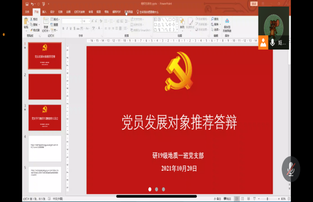 研19级地质一班党支部开展“党员发展对象推荐答辩”大会