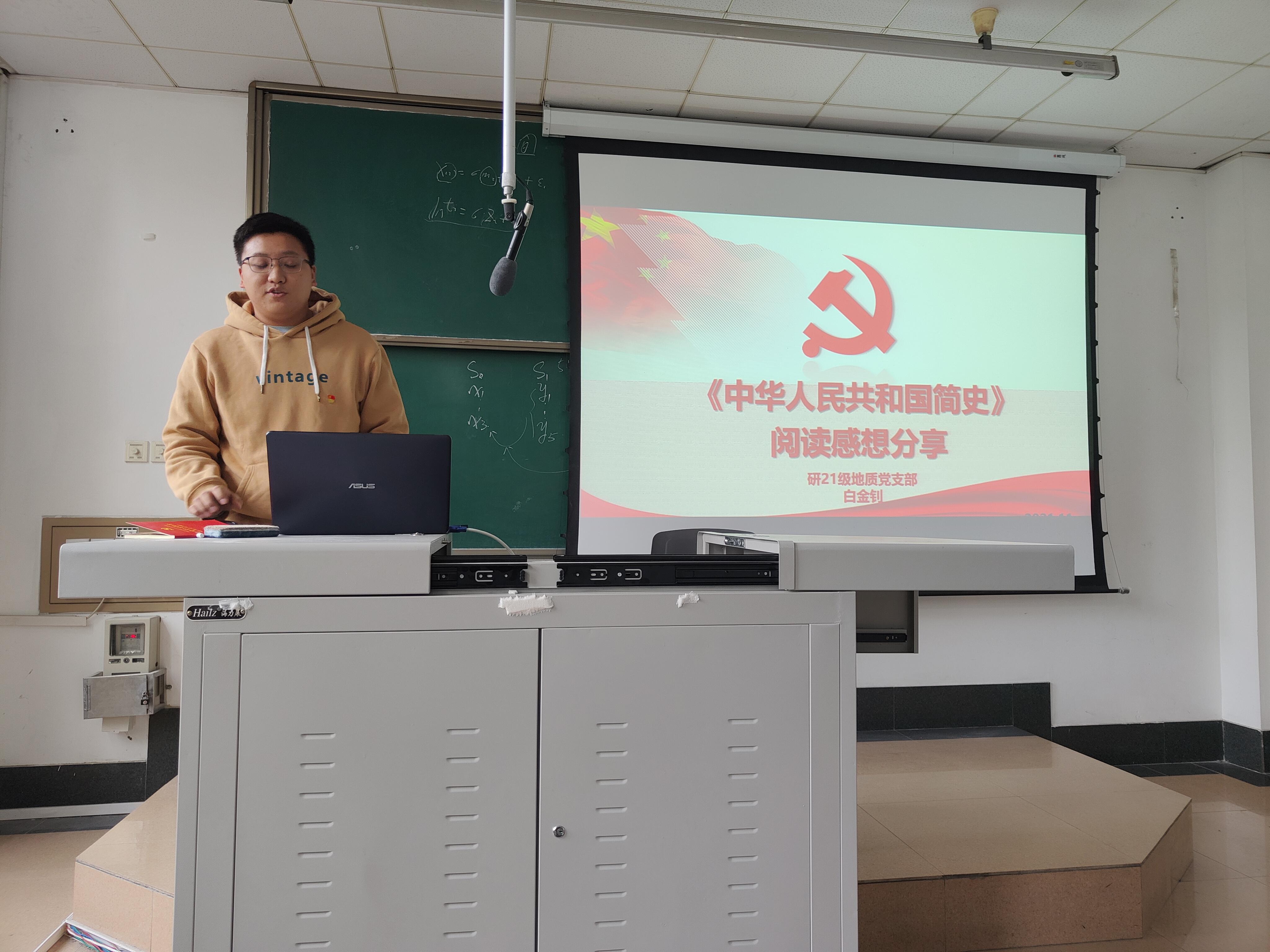 为学习贯彻习近平总书记在庆祝中国共产党成立100周年大会上的重要讲话精神,根据学校党史学习教育相关工作部署,研21级地质党支部和研21级环境第一党支部联合开展此次“学百年党史,忆初心使命”主题党日活动,同时为了持续深入开展党史学习教育,夯实支部党员读书学习成果,一同开展了关于党史原著读书活动的学习分享会。本次会议于11月25日14:00在九里校区J4222教室举行,由支部书记刘杰同志和王婷同志主持召开,此次的活动形式包含了党史知识竞答和党员读书分享会。