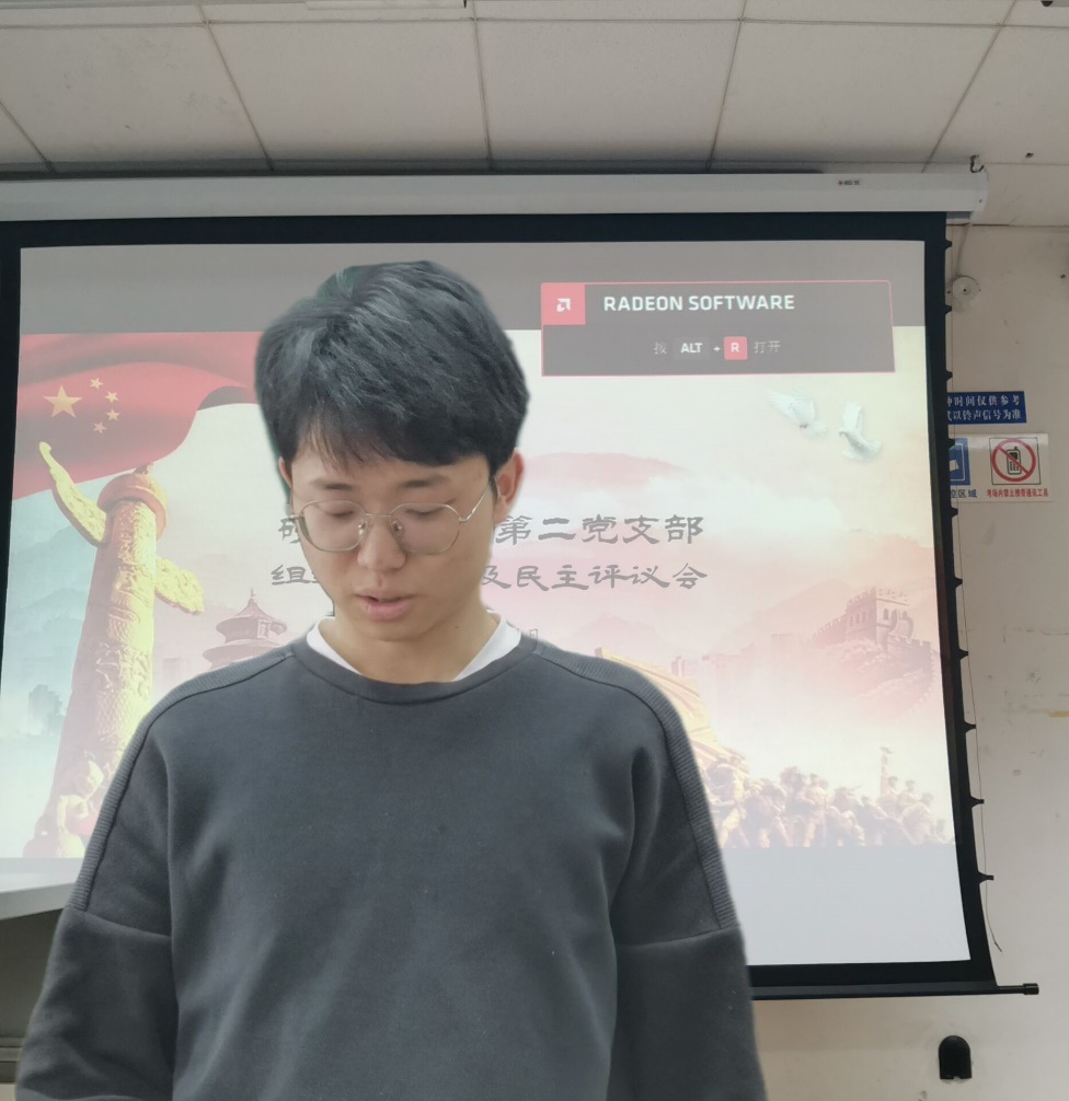 202231416:00,研21级测绘第二党支部在九里4417开展了预备党员转正会议和基层党组织生活会以及民主评议会议,会议由党支部书记蒲思邈同志主持,会议应到正式党员14名,实到14名,党员数大于应到党员数的一半,符合开会条件。