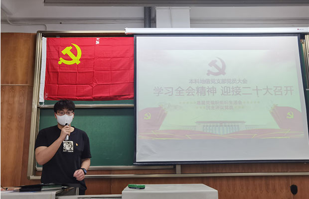 地球科学与环境工程学院本科地信党支部于X4153开展了党员大会,主要内容为组织生活会和民主评议党员,旨在引导广大党员深刻认识“两个确立”的决定性意义,大力弘扬伟大建党精神,坚持自我革命,把思想和行动统一到党中央重大决策部署上来,以优异成绩迎接党的二十大胜利召开。