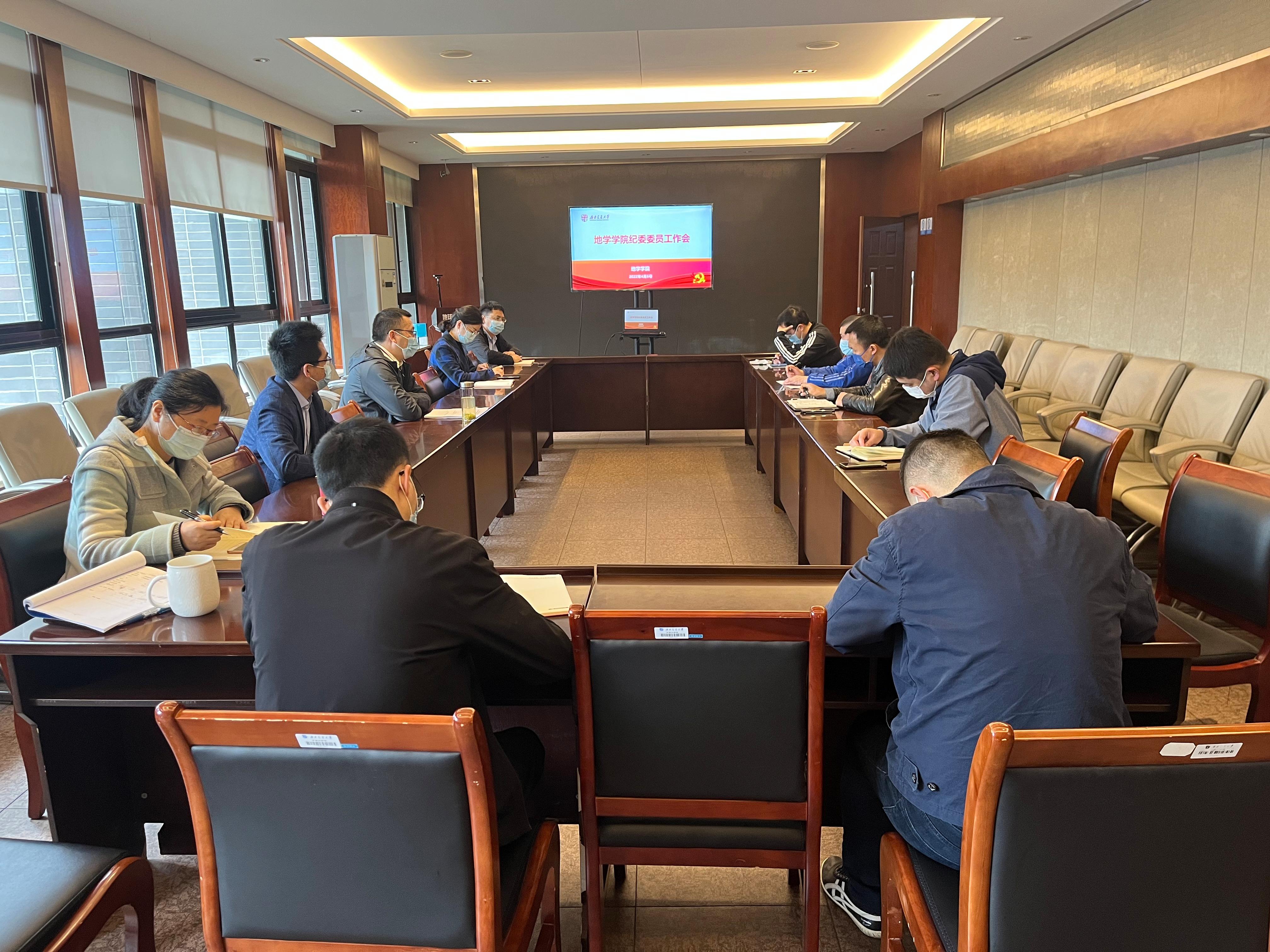 纪律检查委员会印发的《2022年纪检监察工作要点》。傅尤刚强调学院纪委要坚持不懈推进全面从严治党向纵深发展,充分地认识到加强党的政治建设的重要意义,以政治监督牵总,统筹推进组织协调、党委巡察、日常监督、作风督查、执纪问责、队伍建设7项重点工作,并结合学院实际,有针对性地进行阐释。要求各教工党支部引导老师们把思想和行动统一到学校决策部署上,凝心聚力推动学院各项建设,营造风清气正的育人氛围。