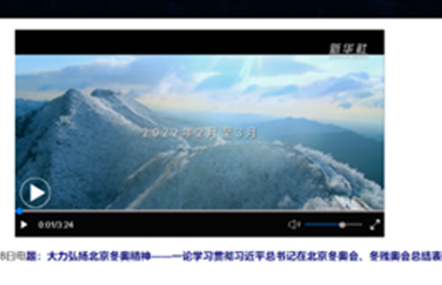学习完冬奥精神后,邢本聪同志为大家播放了“大力弘扬北京冬奥精神—论学习贯彻习近平总书记在北京冬奥会、冬残奥会总结表彰大会重要讲话”视频供大家学习,并号召大家主动学习冬奥精神,感悟冬奥精神,在新年百年征程上砥砺前行,再创辉煌。