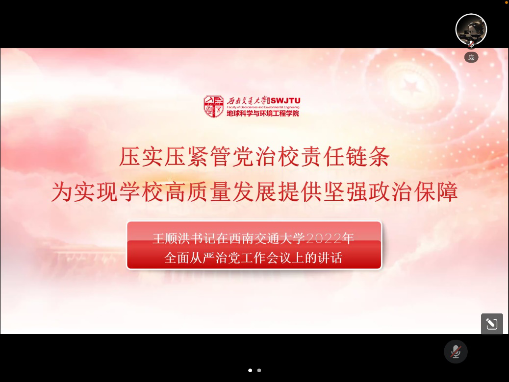 首先,李佳琪带领支部成员共同学习了王顺洪书记的讲话。该讲话系统地传达了习近平总书记在十九届中央纪委六次全会上的重要讲话和中纪委六次全会精神,以及部党组和四川省委全面从严治党的最新部署要求,并回顾总结了我校2021年全面从严治党工作情况,部署安排2022年重点工作任务,坚持不懈纵深推进学校全面从严治党。王顺洪书记强调,2022年是学校事业发展过程中非常关键的一年。全校上下要更加紧密地团结在以习近平同志为核心的党中央周围,深刻领会“两个确立”的决定性意义,不断增强“四个意识”,坚定“四个自信”,做到“两个维护”,纵深推进全面从严治党,推动学校朝着交通特色鲜明的世界一流大学奋斗总目标奋勇前进!
