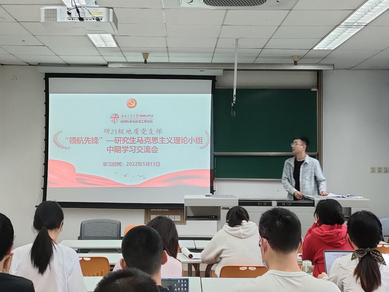 为深入学习贯彻习近平新时代中国特色社会主义思想,引领支部党员深刻领悟“两个确立”的决定性意义,增强“四个意识”,坚定“四个自信”,做到“两个维护”,弘扬伟大建党精神,在深入学习贯彻十九届六中全会精神的基础上,以更加饱满的热情来迎接党的二十大胜利召开,于2022513日下午两点,研21级地质党支部组织线下开展“青春献礼二十大,强国有我新征程”主题党日活动暨“领航先锋”理论小组中期学习交流会。本次活动由支部书记刘杰同志主持,积极分子代表高文杰同志做简要学习汇报,支部20名党员同志及8名入党积极分子于集会中学习十九届六中全会精神。