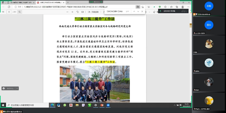 本次专题活动由邢本聪同志主讲。活动主要内容包括20个四川省高校“优秀支部工作法”案例领学、观看推广视频、讨论交流三个方面。