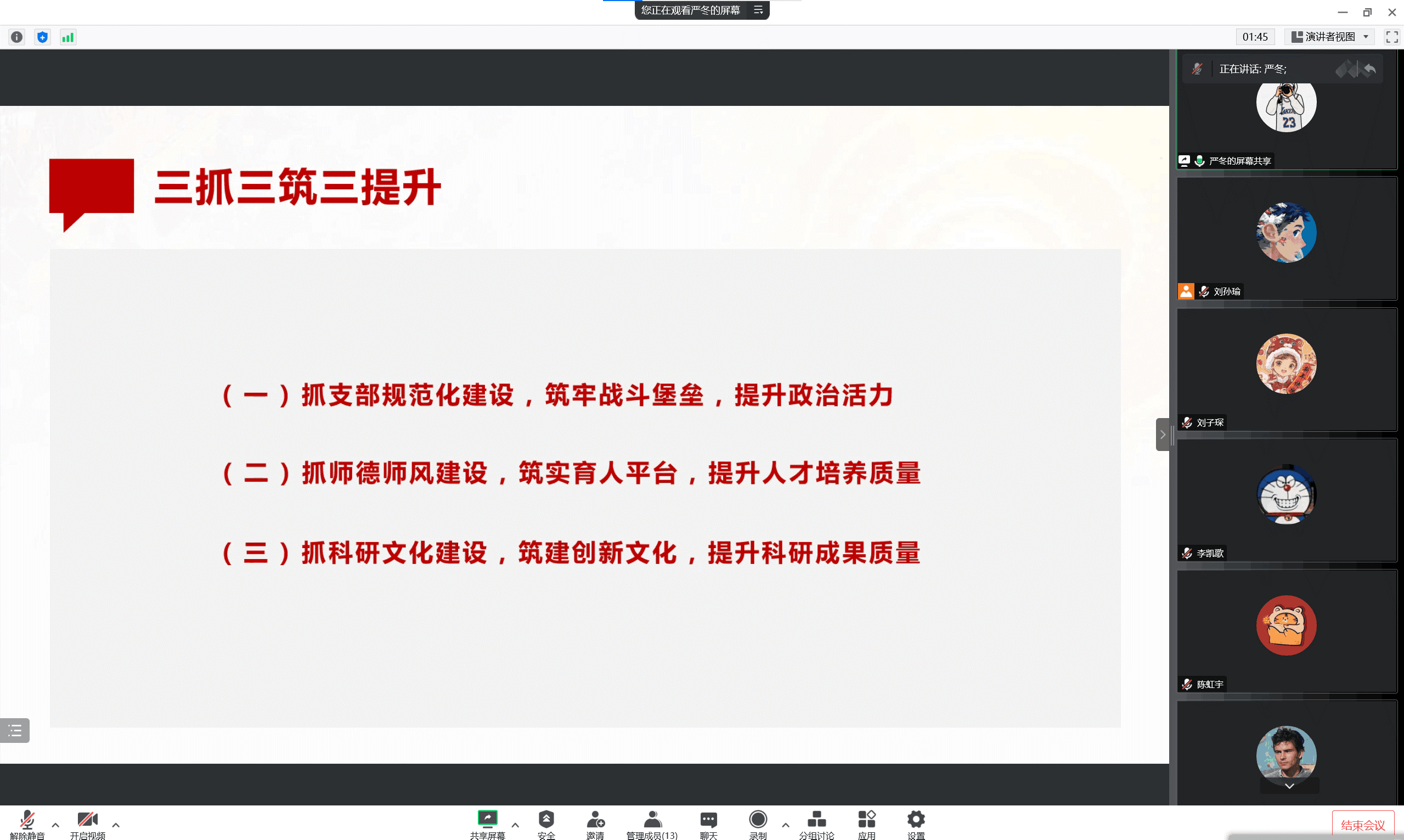 2022年9月23日下午1点,研21级测绘第二党支部在腾讯会议开展了学习四川省高校“优秀支部工作法”活动,党支部书记严冬带领大家学习了四川省高校“优秀支部工作法“文件及精神。