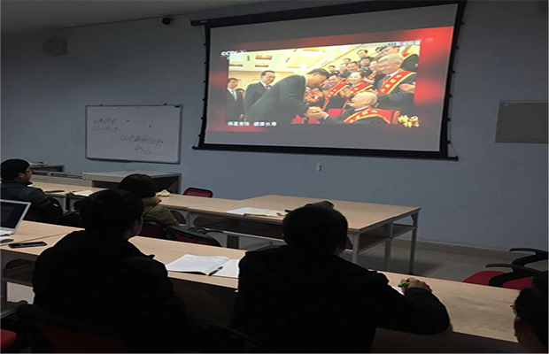 大会第一项,全体观看了榜样张富清同志的视频。在战争年代,张富清同志冲锋在前,出生入死,立下赫赫战功;在和平年代,他响应党和国家的号召,主动到最偏远、最贫穷的地方去,以实际行动诠释了共产党员为民族谋复兴,为人民谋幸福的初心和使命。他是我们所有人的学习楷模。