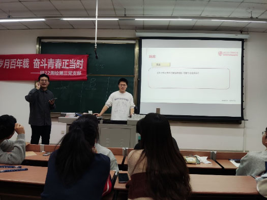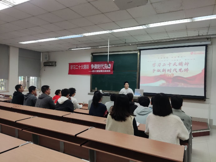 研22测绘第三党支部在我校J4017教室召开了“学习二十大精神,争做时代先锋”的主题党日活动,会议由党支部书记刘翔同志主持,支部党员和积极分子均参加。