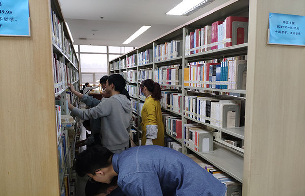 在认真了解了工作内容之后,同学们便开始分工合作认真进行志愿服务。在进行图书摆放工作的过程中,同学们互帮互助,认真努力,并且会积极的问工作人员相关的问题。在工作人员的耐心解答中我们得知,他们每天都要进行图书归还摆放工作,日复一日,年复一年,就是为了让同学们更方便地获取学习资源。同学们在工作过程中也体会到图书摆放看似是一件小事,但是也需要付出许多汗水和劳动。也体会到服务同学的快乐于满足。