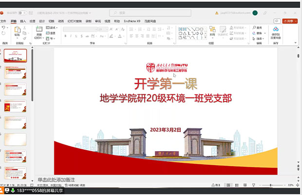 2023年3月2日星期四晚上八点,研20级环境一班党支部于腾讯会议开展“开学第一课”专题政治理论学习活动,主要内容为:认真学习中共中央政治局常务委员会2月16日会议精神。本次会议由研20级环境一班党支部书记李佳琪主持,研20级环境一班党支部全体党员参加。