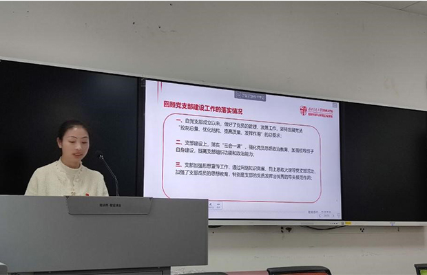 接下来,陈馨怡同学向党员们介绍了本党支部的发展概况,回顾了党支部建设工作的落实情况,指出了当前支部存在的问题并明确了整改方向,鼓励党员们一起努力,完善党支部建设工作。
