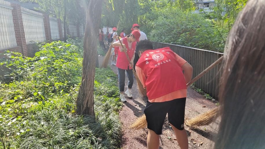 本次活动由本科地质资勘党支部的党员与积极分子同志们带头,帮助居民清扫落叶,活动中,同志们积极行动,他们身穿红马甲,手拿扫帚和簸箕,对路面、绿化带、人行道等区域的垃圾袋、纸屑、烟头等进行清理打扫。