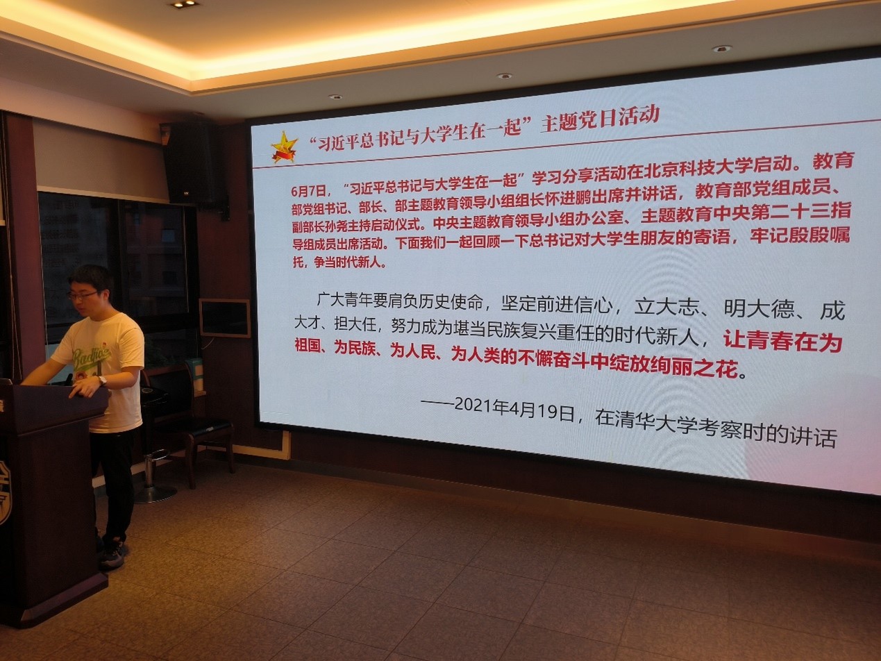 读书交流会的最后,由任纪州同志带领全体参会成员一起回顾总书记对大学生朋友的寄语,呼吁与会同志让青春在为祖国、为民族、为人民、为人类的不懈奋斗中绽放绚丽之花。