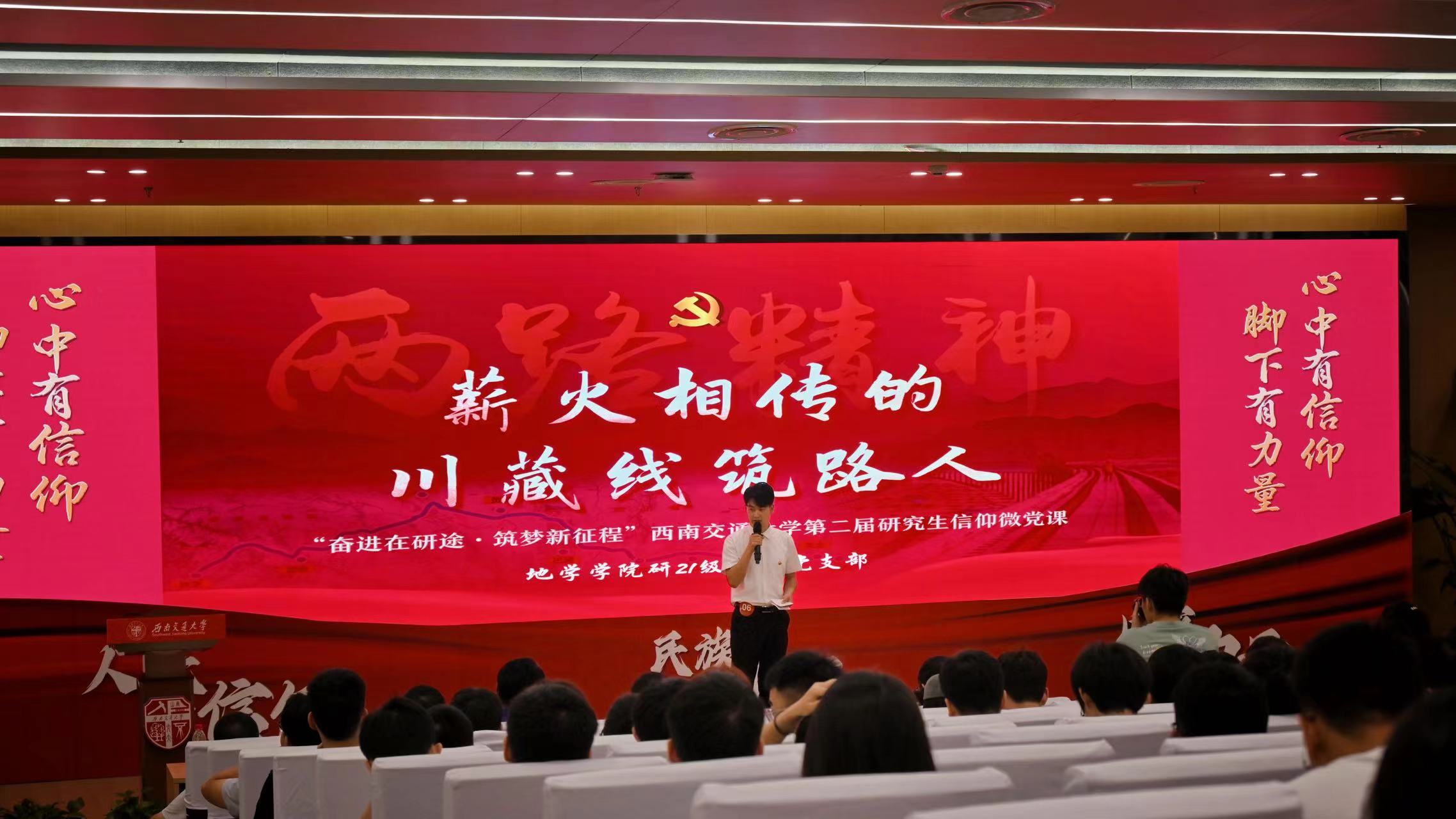 7月7日下午,“信仰”——研究生微党课决赛在犀浦校区图书馆一号报告厅举行,党委组织部、党委宣传部、党委学生工作部及相关学院学生工作负责人出席此次活动并担任评委。经过各支部激烈的比拼,研21级地质党支部成功斩获“二等奖”,研21级环境第一党支部成功斩获“三等奖”,同时,学院也荣获“优秀组织奖”荣誉称号。