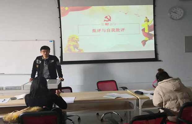 随后进行了批评与自我批评,支部书记先对上学期的党建工作做了总结,之后各党员同志对自己上一学期进行了总结,对自己在党支部的表现、日常生活和学习过程的不足作了自我批评。
