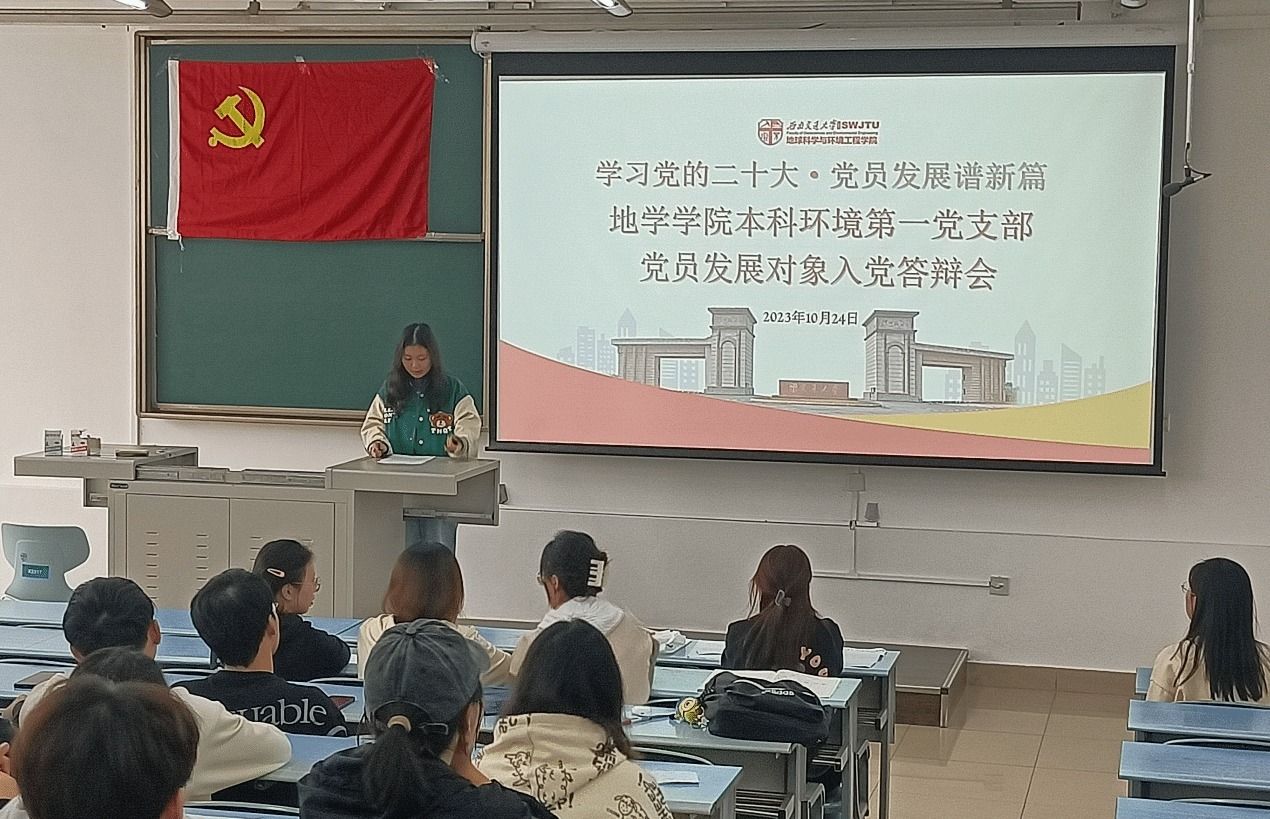 为做好2023年发展党员工作,切实提高党员发展质量,本科环境第一党支部于2023年10月24日在X2317教室开展本支部2023-02期发展对象选拔答辩大会。本次会议由本科环境第一党支部书记刘烨同志主持,翟琦老师到会指导。