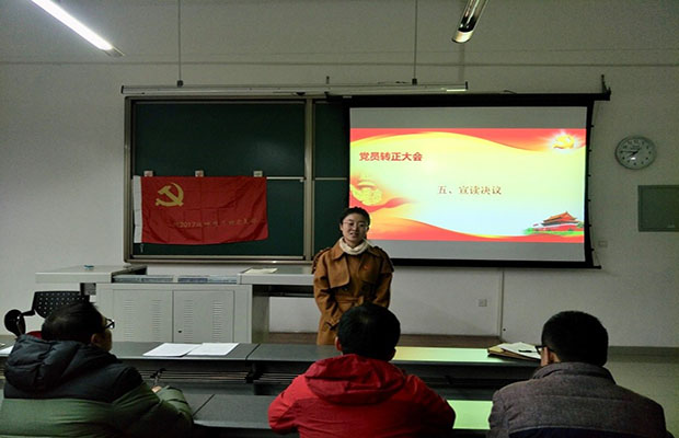 201812619:30,地球科学与环境学院研地质三班党支部于X9501教室召开王洁同志转正大会。会议由研地质三班党支书袁彬同志主持,支部党员6人参会(4名正式党员、2名预备党员),党务秘书兼组织员李晓宇老师莅临大会指导工作