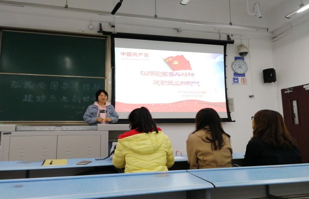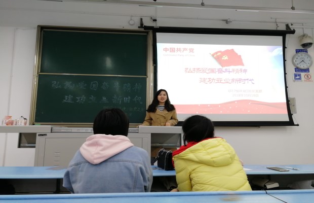 20181018号,研2017级环境第一支部于X2427教室开展了“弘扬爱国奋斗精神,建功立业新时代”的主题党日活动。