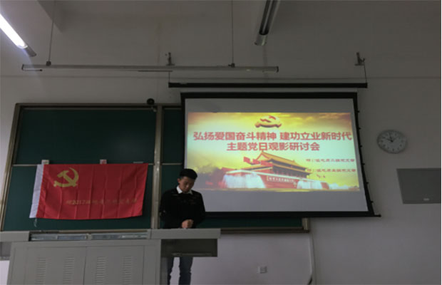 犀浦校区X9505教室开展了“弘扬爱国奋斗精神、建国立业新时代”主题党日观影研讨会,本次会议由地质三班党支部书记袁彬同志主持。