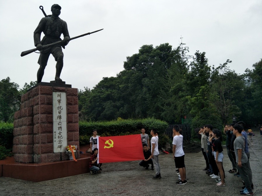 首先参观的是“四川保路运动史事陈列馆”,四川人民自办铁路,清政府迫于帝国主义的压力,要将路权收归,四川人民奋起反抗。清廷派湖北新军前去镇压,造成武昌空虚,为辛亥革命首役武昌起义奠定了基础。然后参观了“辛亥秋保路死事纪念碑”,是当时川路总公司为了纪念1911年四川保路运动中牺牲烈士而修建的纪念建筑。最后参观了“川军抗日阵亡将士纪念碑”,并且所有党员面向党旗对党宣誓。