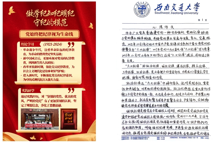 作为支部书记,我非常感谢学校和学院能提供给我们党支部这次机会,成立了马克思主义理论学习小组。习近平总书记强调,青年一代有理想、有本领、有担当,国家就有前途,民族就有希望,作为新时代的青年党员,我们不仅要怀揣梦想,更要坚守纪律,确保自己的言行举止符合党的标准和要求。希望通过本次系列活动,我们支部的所有成员都能对党的纪律有更加清晰的认识,对自己的行为有了更加严格的要求,不断提高自己的党性修养和道德水平。党支部也将延续党纪理论学习小组的机制,进一步开展各式各样的党日活动,以丰富多彩的形式促进大家的学习主动性。