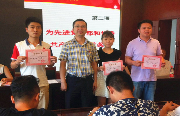 会议在庄严的国歌声中拉开序幕。会议伊始,由各领导依次为先进党支部、优秀教工党员以及优秀学生党员颁奖。