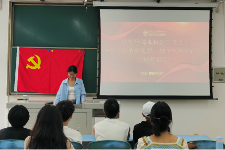 党的二十届三中全会是在以中国式现代化全面推进强国建设、民族复兴伟业的关键时期举行的一次十分重要的会议。2024年9月12日12时,本科消防党支部于X2232教室顺利召开了“学习改革新思想,健全兴国新体制”主题党日活动,本次活动旨在深入贯彻党的二十届三中全会精神。活动以学习交流的形式开展。本次活动党支部书记邹红宇同志主持,支部成员总计8人与会。