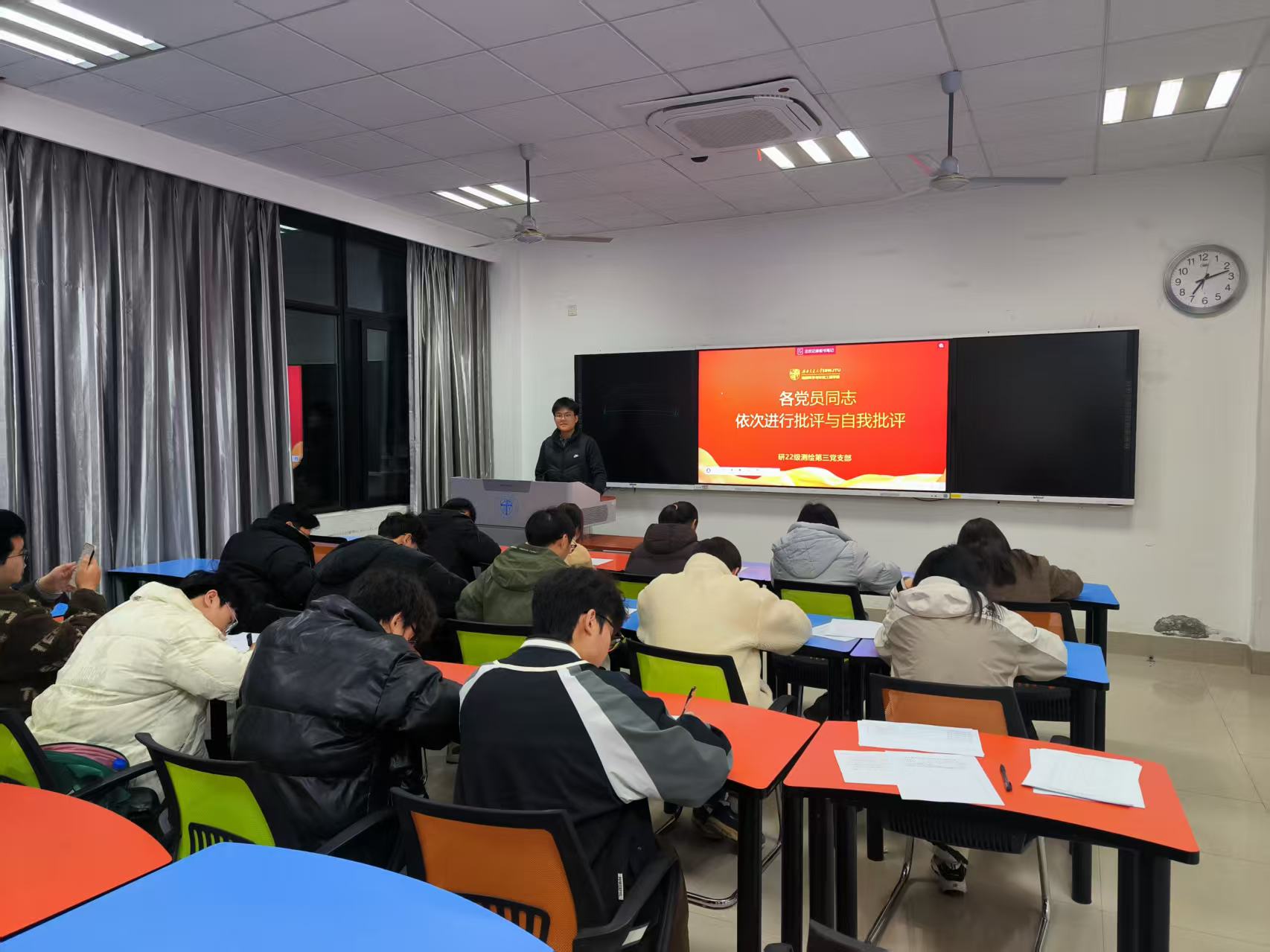 研22级测绘第三党支部在X4134教室顺利召开2024年度组织生活会和开展民主评议党员工作。本次活动的主题是聚焦深入学习贯彻习近平新时代中国特色社会主义思想,巩固深化党纪学习教育成果,综合发挥党的纪律教育约束、保障激励作用,为进一步全面深化改革、推进中国式现代化提供坚强纪律保证。支部全体成员围绕会议主题,结合自身实际讨论感想,在党支部内全面开展查摆突出问题及批评与自我批评。支部党员共有19人,此次会议到会17人,会议由党支部书记刘翔同志主持。
