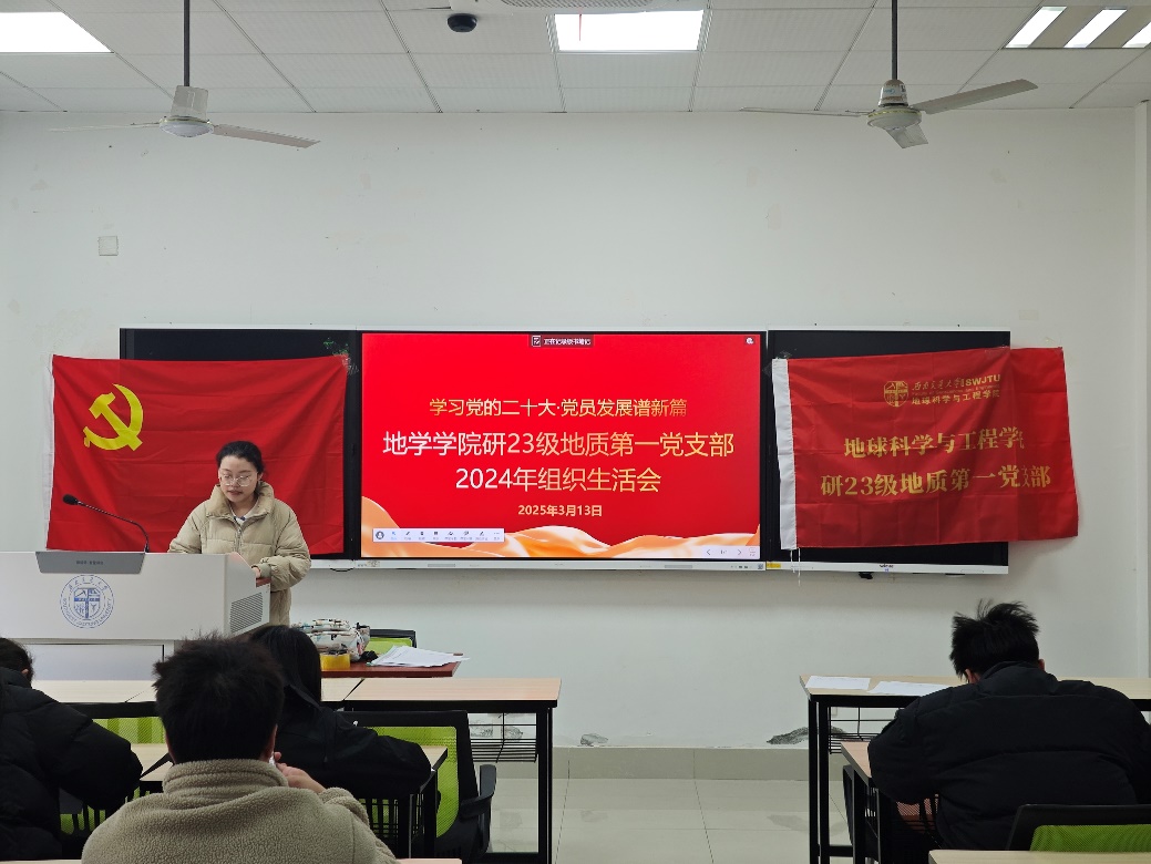 2025年3月13日下午15时50分,研23级地质第一党支部于X4127教室顺利召开了2024年度组织生活会,此次会议旨在发挥党的纪律教育的约束和保障作用,激励全体成员为全面深化改革、推进中国式现代化提供坚实的纪律保障。会议通过批评与自我批评的形式,增强支部同志的党性修养,推动支部工作的持续优化。本次会议议程共两项:第一项为支部成员开展批评与自我批评,由支委带头,党员逐一发言对支委工作、支部成员以及自我进行反思批评;第二项:支部同志对正式党员进行民主评议打分。本次会议由党支部书记王睿同志主持,支部成员总计15人与会。