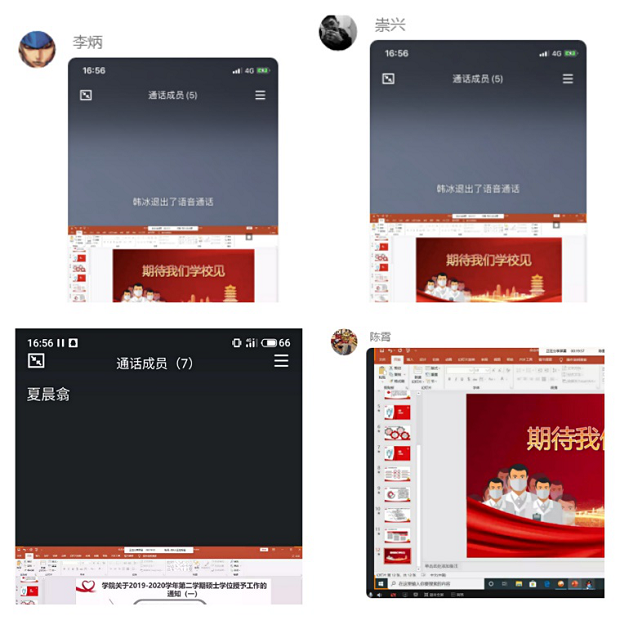 最后各位同志讲述了所处地区的防疫现状与毕业论文写作情况,大家都期待着疫情早日结束尽早校园。此次在线会议圆满结束。