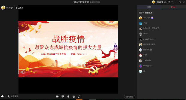 研17测绘三班党支部开展“凝聚众志成城抗疫情的强大力量”主题云上组织生活会