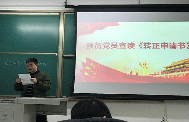 会议第二项是讨论张伊飞同志的转正问题,会议上,首先由预备党员张伊飞同志向全体到会同志宣读了转正申请,汇报了自己在预备期的一年内,在生活上,在学习上,在工作上履行义务的情况,并指出自己在入党时提出的缺点和不足的改正情况,有哪些已经改正,并且哪些还存在着不足。