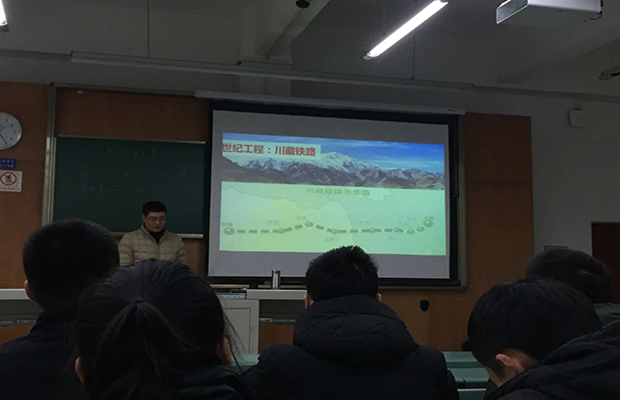 首先,赵老师问支部党员何为“责任担当”,随后,他在黑板上写下两行板书“勇于敢于做应该做的事,勇于敢于不做不该做的事”,这体现了赵老师心中的责任担当的含义。赵老师用ppt的形式向我们展示了,我们交大在国家基础建设方面所作出的贡献。在新中国成立之初,我国的铁路里程只有2.2万公里,70 年来,全国铁路完成的人口输送人次达全国人口的一半,向着“交通强国”的目标迈进了很大一步。成昆铁路被称为“20世纪三大杰作之一”,被认为是“露天地质博物馆”,全程各种地质现象灾害应有尽有,一度被认为是“铁路禁区”,在苏联撤走所有专家,国际上普遍不看好中国的技术,认为中国人不能造出自己的铁路的情况下,交大的前辈们,徒步奔波在成都和昆明之间,用脚一遍一遍的丈量着成昆铁路的长度。被称为“世纪工程”的川藏铁路的建设中也有交大人的身影,交大的老师们上到海拔4000多米的高原上,取得第一手资料以为后续的铁路建设提供数据支持。