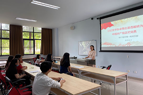 63日下午一点,研17级环境一班党支部于X9133举办了关于陈卓同志能否按期转为中国共产党正式党员的会议,本次会议由支部书记汪琴琴主持。
