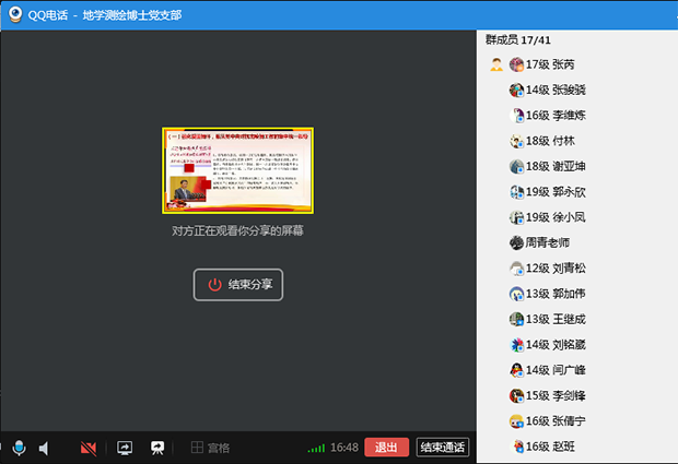 为贯彻落实党中央关于常态化疫情防控的决策部署,充分发挥基层党组织战斗堡垒作用和师生党员先锋模范作用,引导支部党员树立正确的价值观、人生观,在疫情面前团结一心,共同抗疫,深刻认识到中国共产党的领导和中国特色社会主义制度的显著优势,2020年6月21日下午6点,地球科学与环境工程学院博士测绘党支部在支部qq群内召开“深化理论认识,夺取抗疫胜利”专题微党课学习,党课由支部书记张芮主讲。