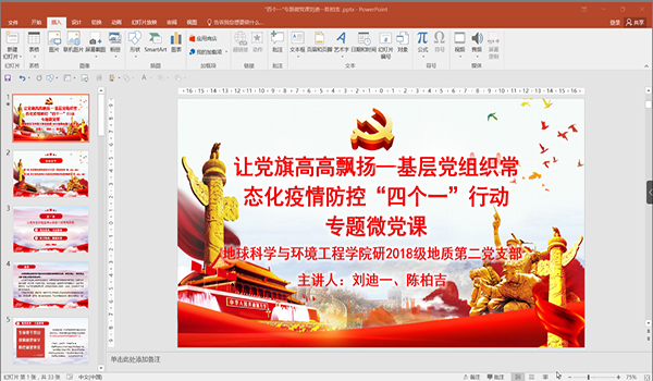 研18级地质二班党支部开展“四个一”行动专题微党课党日活动