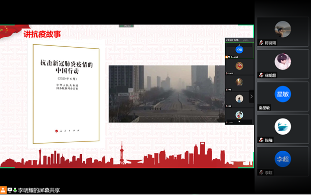 而后李明耀同志分享了一个真实的战“疫”故事。故事的主人公是一个1998年出生的年轻护士,她积极响应祖国的号召,作为四川省第三批援鄂医护人员中的一员,参与到了这次疫情阻击战中。李明耀同志通过讲述了年轻援鄂护士的亲身经历,让我们了解到了一些感人的故事。而像这这样的感人的故事还远远不能道尽!这个故事让我们明白了关键时刻挺身而出,是共产党人的政治本色。哪里任务险重,哪里就有党员当先锋作表率!