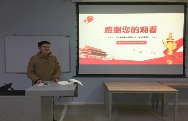 博士环境党支部于2020年10月15日在X9538开展了主题为“青春的我,信仰的光”的“四史”知识学习教育活动。支部党员通过学习了解了我们党成立以来、新中国成立以来以及改革开放以来的重大事件,了解我们党领导人民进行艰苦卓绝的斗争历程,了解中国近代以来的斗争史、我们党成立以来的奋斗史、新中国成立以来以及改革开放以来的发展史。
