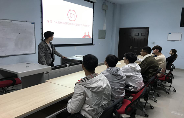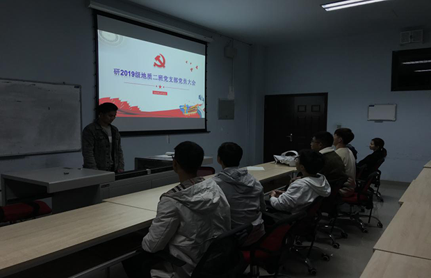 研2019级地质2班党支书孙东东主持,地质二班六名党员和四名发展对象参加,一人请假。