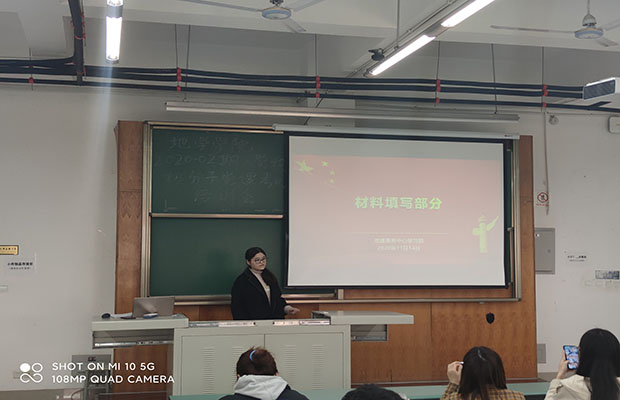 最后,学习部部长黄淑怡特意强调了材料填写的注意事项并带领大家简单学习了入党流程,强调了重要的时间节点以及思想汇报的基本写法和要求。之后祝愿同学们取得好成绩!