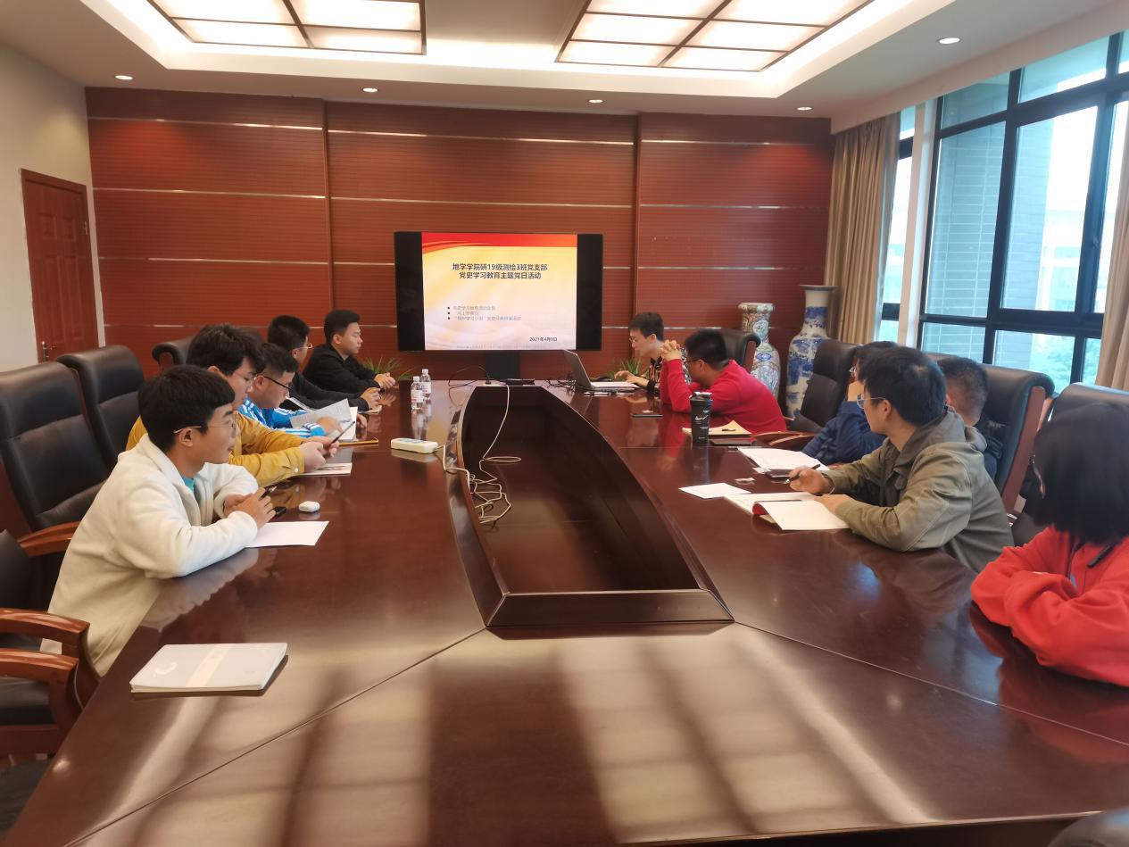 4月9日下午三点,研究生2019级测绘3班党支部在X4531会议室开展主题党日活动。活动内容分为三部分:党史学习教育动员、“网上祭英烈”和“旗帜学习小组”党史经典研读活动启动会。活动由支部书记刘明仁主持,支部5名党员参加,7名积极分子参加。