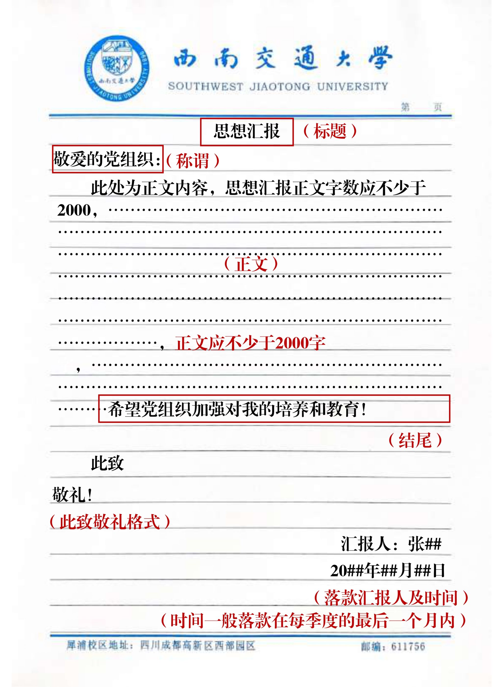 思想汇报正文字数要求至少2000字(交大信纸4页以上),要求字迹工整,纸面整洁。