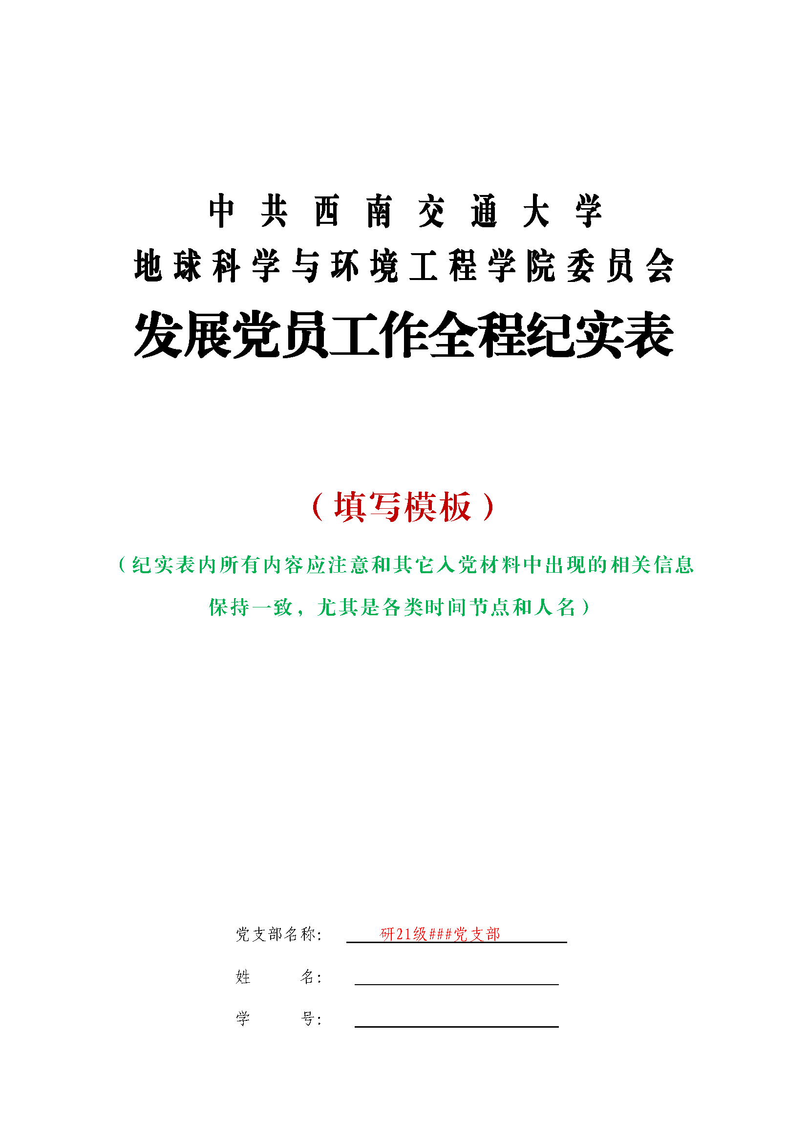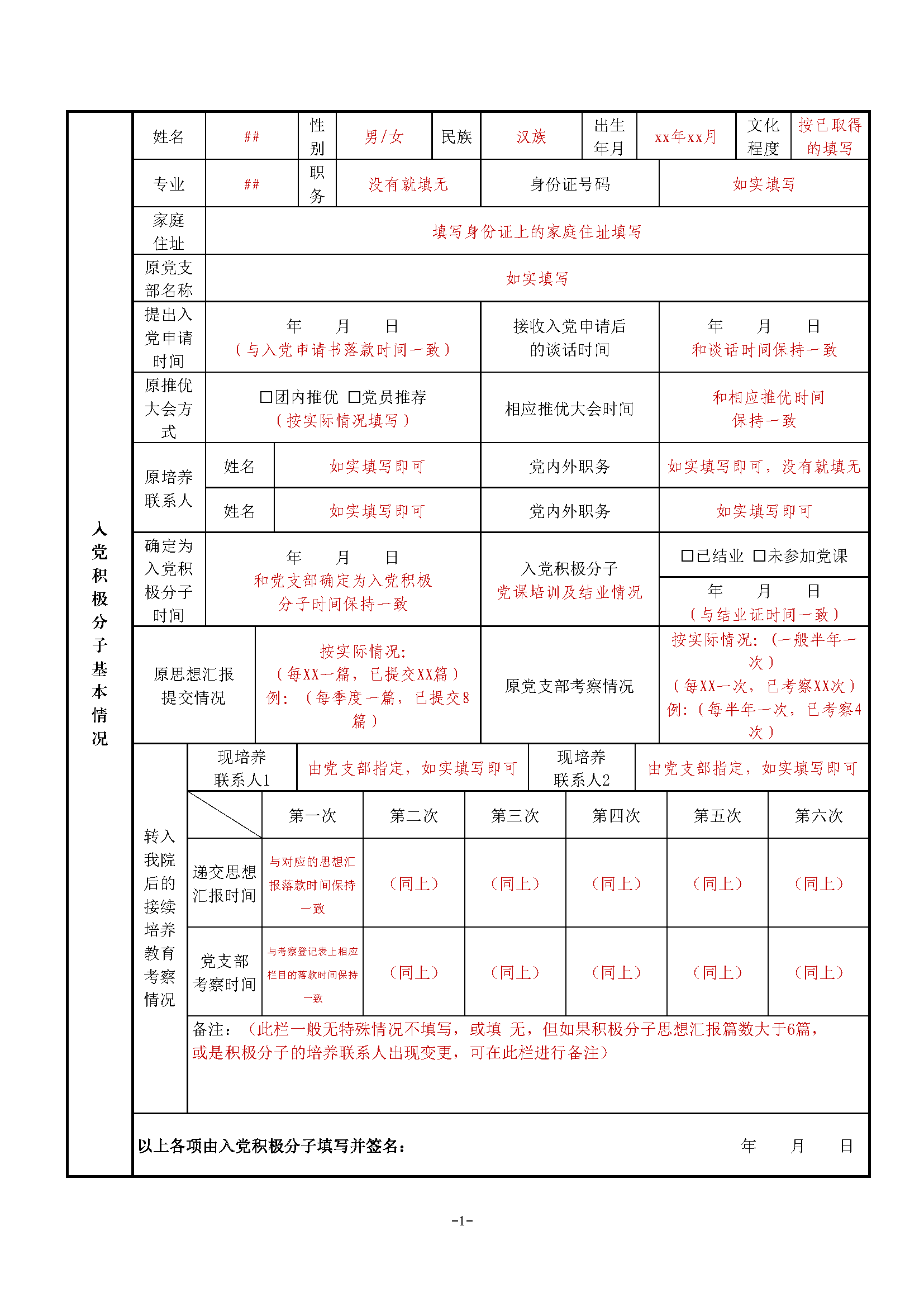 版本1:适用于在本院提交入党申请后,全程一直在本院发展入党的同志(适用于院内绝大部分发展入党的同志)
