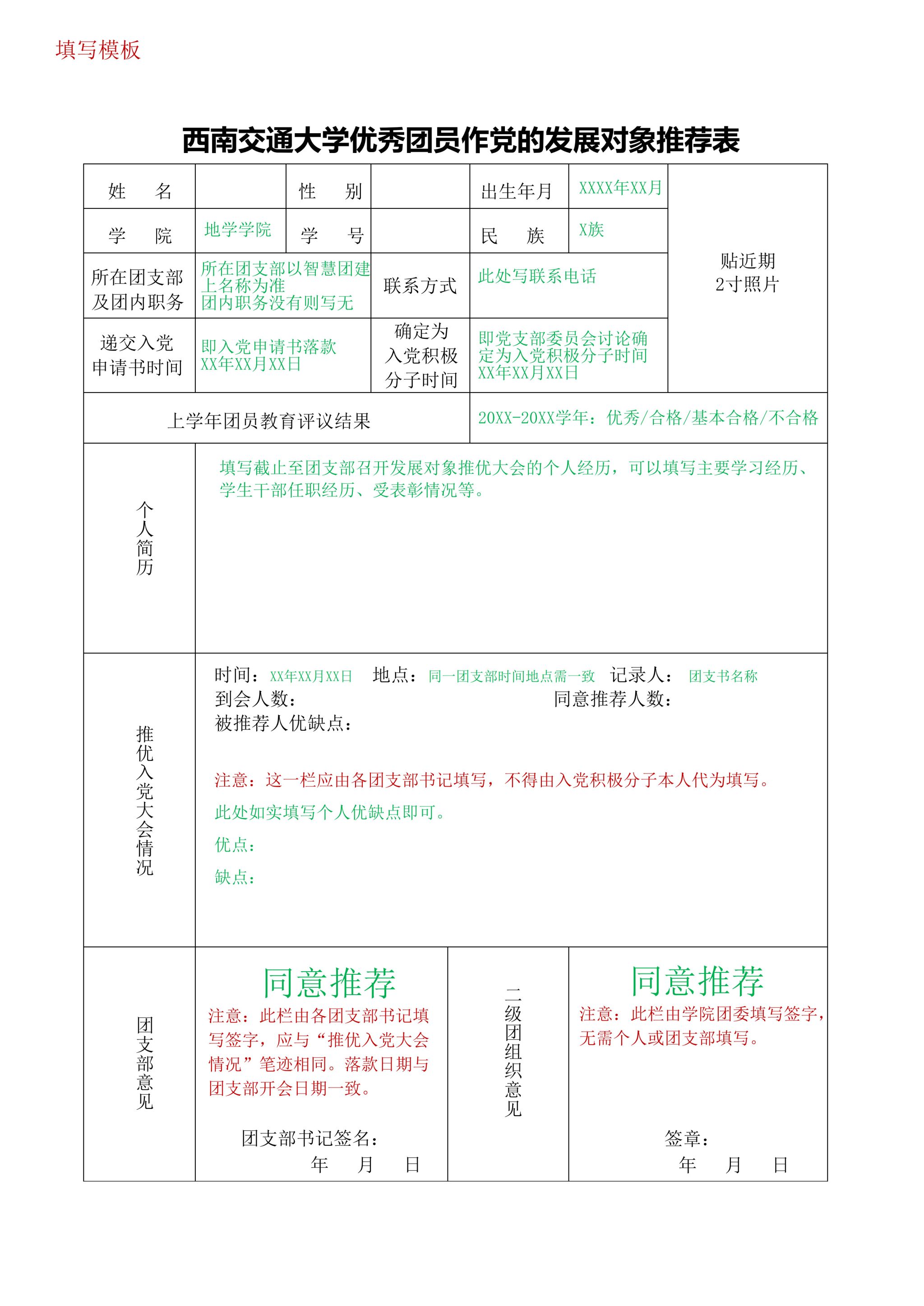 每日大赛 优秀团员作党的发展对象推荐表样例及撰写指南