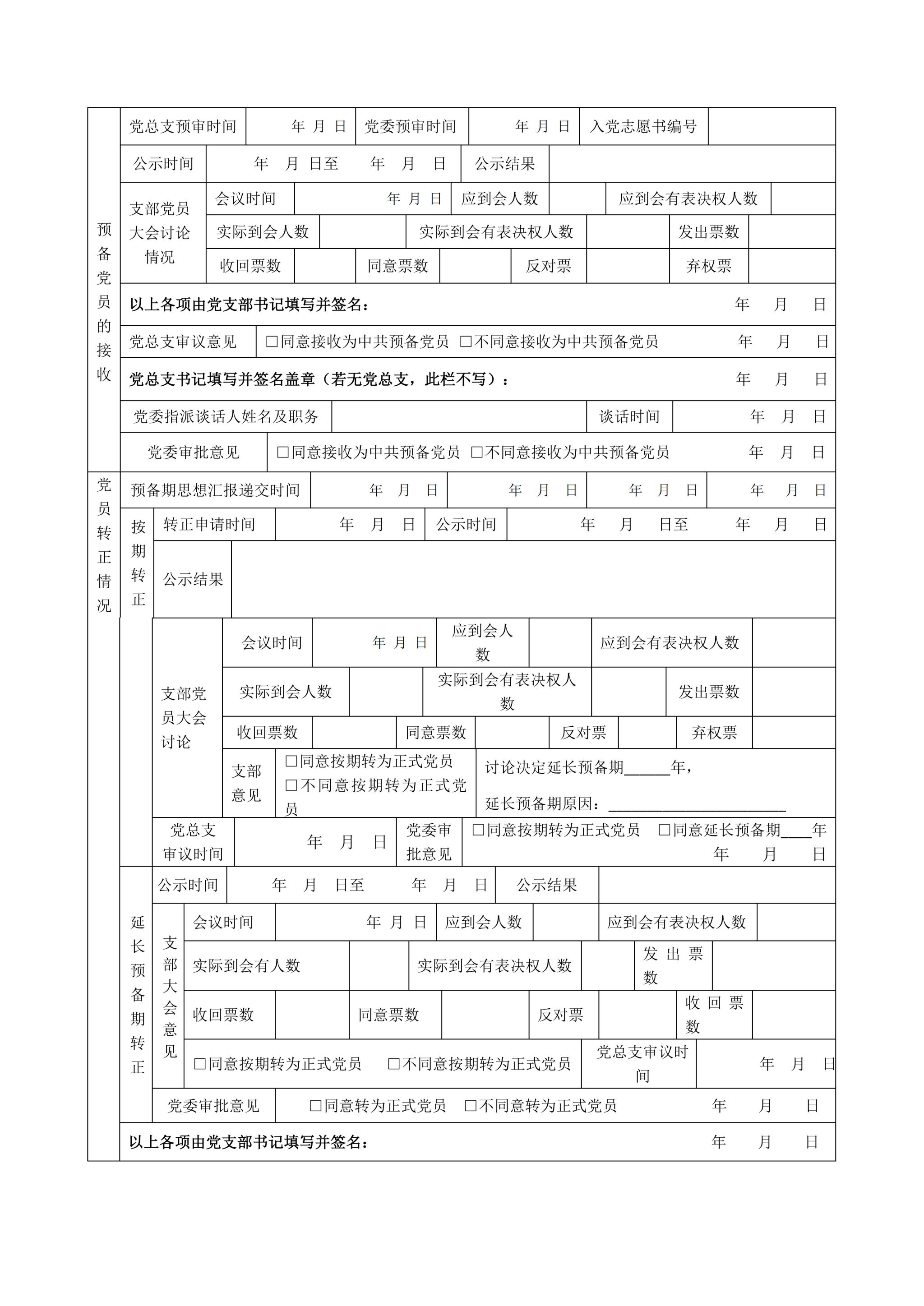 每日大赛 发展党员工作全程纪实表样例: