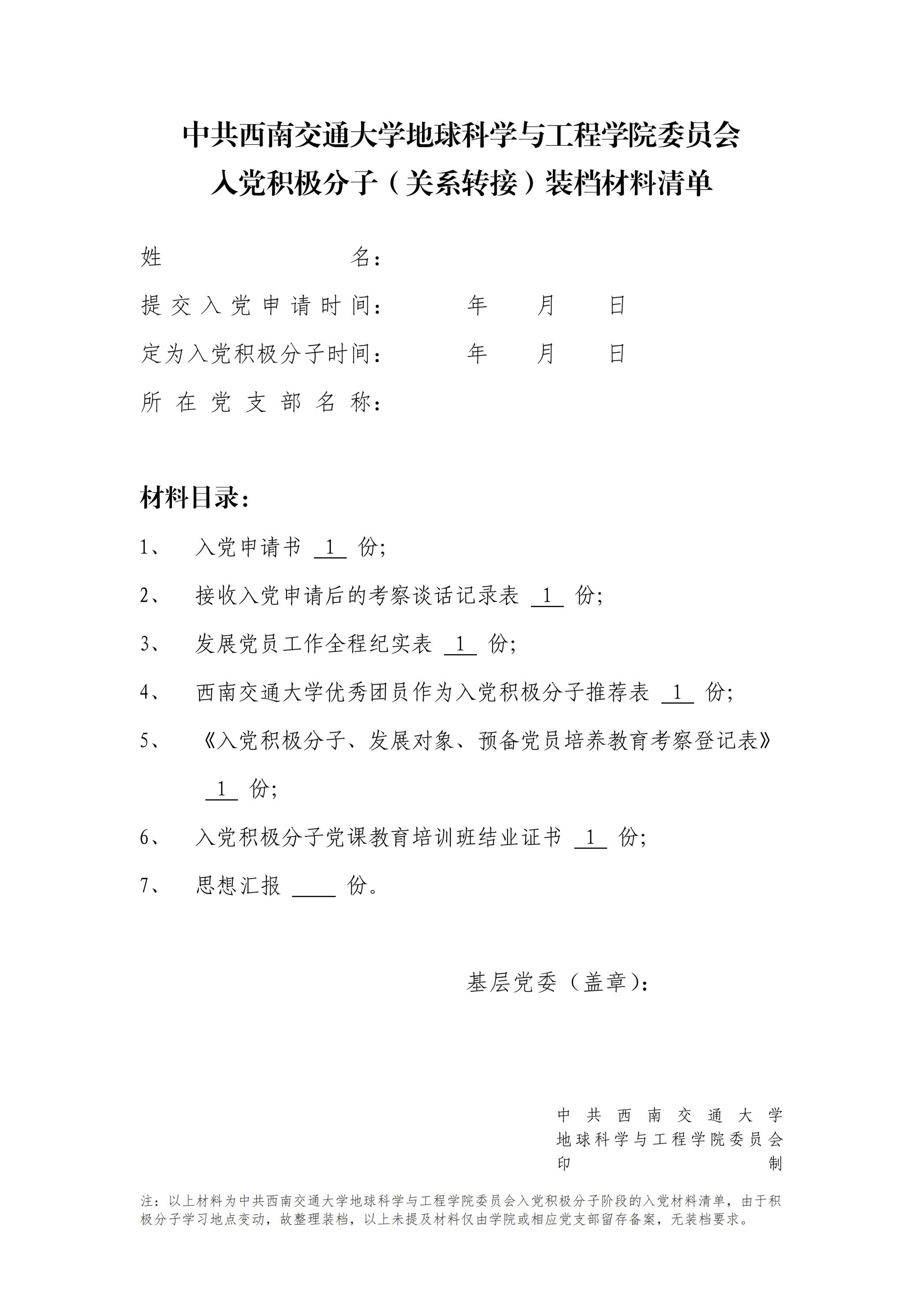 转专业(转出)入党积极分子应在转专业结果公示后3周时间内完成党组织关系转接,以便转入党组织接续培养。具体通知应查阅每年秋季学期《关于做好XX年转专业入党积极分子关系转接的通知》,此处就党组织关系转接涉及的三份重要材料要求如下。