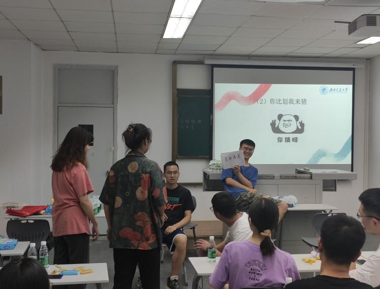 最后是促进成员相互熟悉的游戏环节,该部分主要由“你的名字”、“你划我猜”、“疯狂的乒乓球”和“拍7令”四个游戏构成。游戏内容极具趣味、富有挑战,在游戏过程中,研会成员渐渐熟悉,大家慢慢融入到研会这个“大家庭”中,现场气氛也被推向高潮。